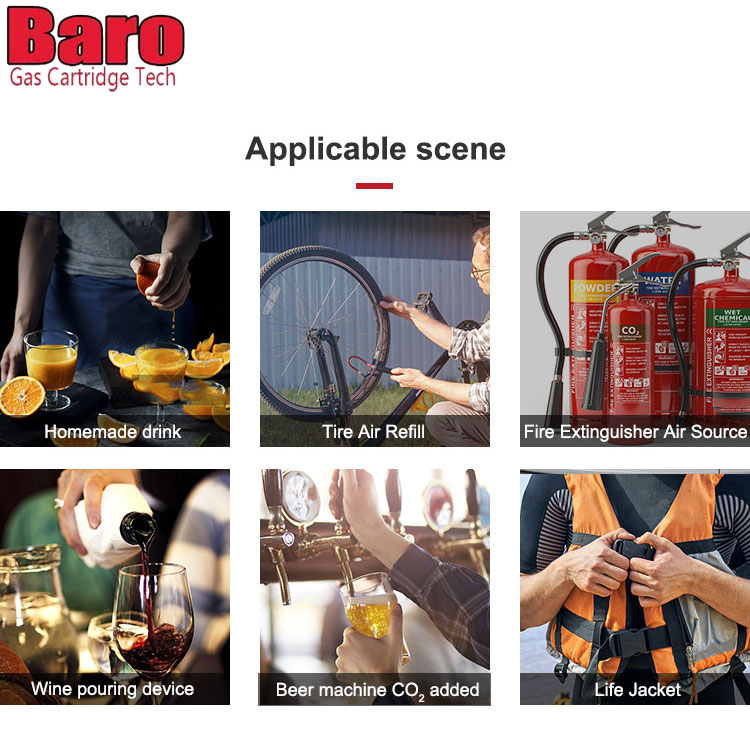 Tenga en cuenta que algunos cilindros de CO2 de mala calidad, los problemas incluyen: problemas de compatibilidad técnica (volumen de gas, rosca, etc.) que los cilindros Baro mala calidad (estanqueidad, corrosión, rotura, etc.) pérdida de la certificación CE y la garantía no garantiza el funcionamiento de el airbag.
