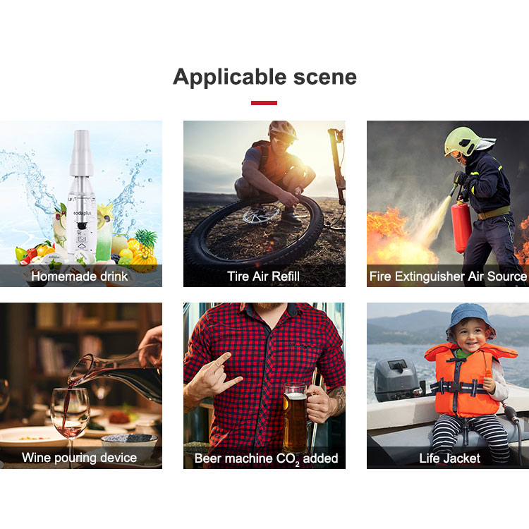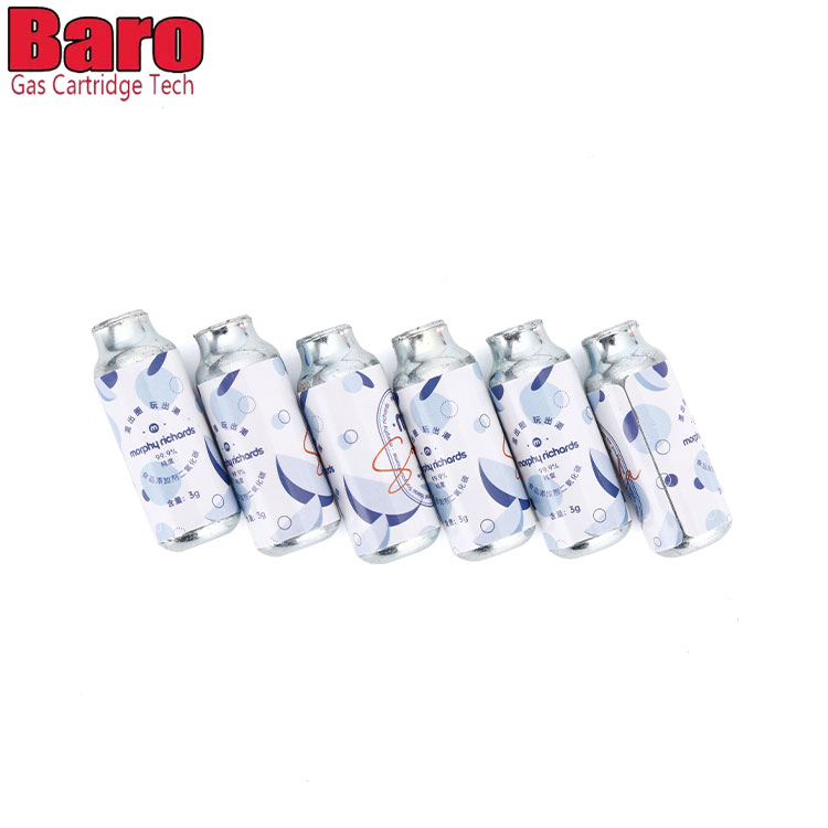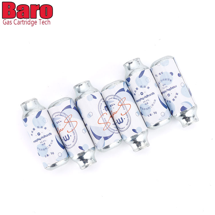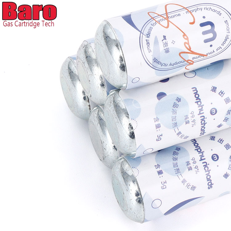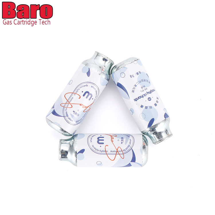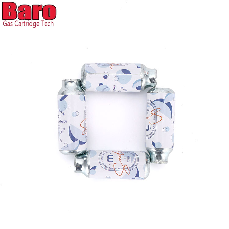 - Los cartuchos de CO2 de grado alimenticio para agua Seltzer pueden ser compatibles con la máquina de refrescos del mercado y otros cargadores de dióxido de carbono, cada cilindro contiene 3 g de dióxido de carbono puro de grado alimenticio, es la mejor opción para fabricar refrescos.