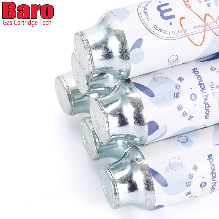 Los cartuchos de CO2 son 100% seguros para alimentos y bebidas. Todos los cartuchos de CO2 que producimos son cartuchos de calidad alimentaria. Cada cartucho tiene una pureza del 99,9 % y utiliza dióxido de carbono de calidad alimentaria. Tecnología de procesamiento: limpieza con vapor dentro del cilindro.